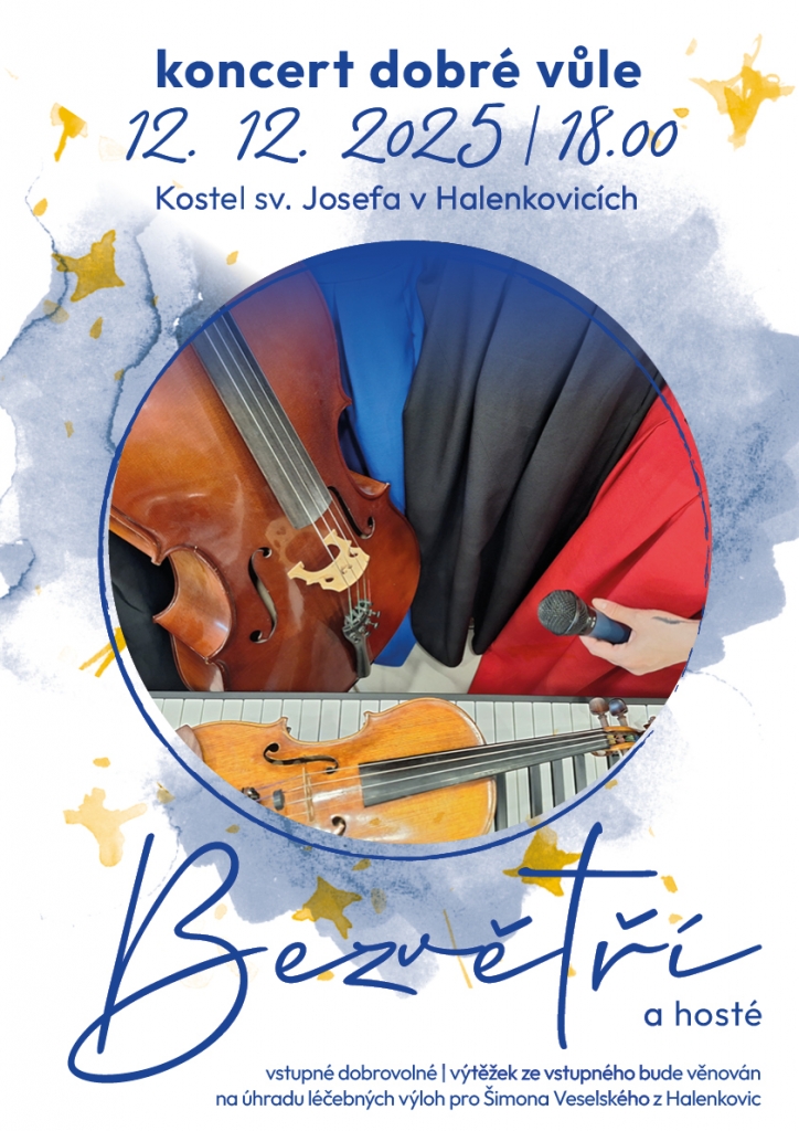 - Tradiční vánoční Koncert dobré vůle skupiny Bezvětří, který se uskuteční 12. 12. 2025 v kostele v Halenkovicích – celý výtěžek poputuje Šimonovi