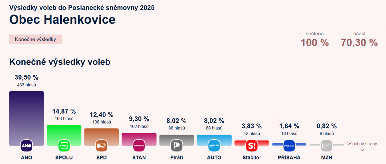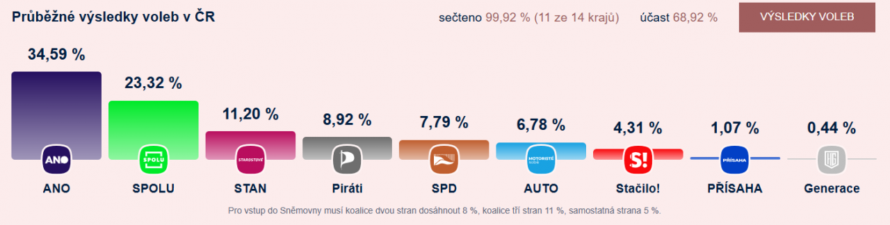 VÝSLEDKY Volby do Poslanecké sněmovny Parlamentu ČR 2025
