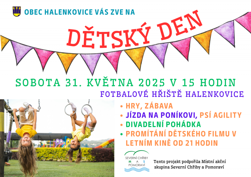 31.05.2025Obec Halenkovice srdečně zve všechny děti i dospělé na DĚTSKÝ DEN, který se uskuteční: