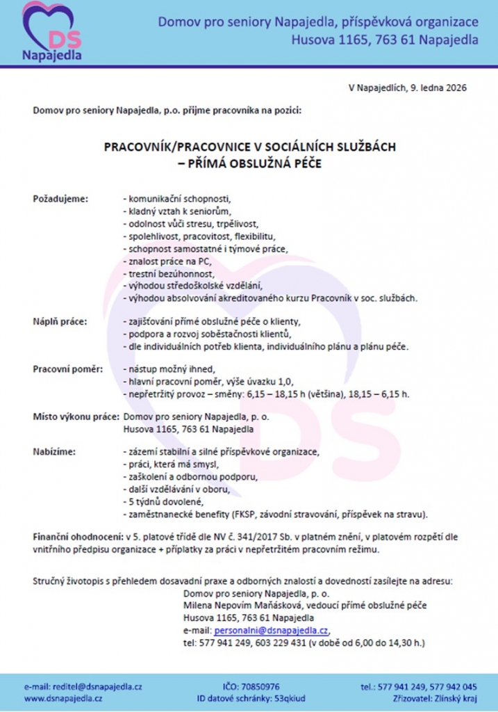 PRACOVNÍK / PRACOVNICE V PŘÍMÉ OBSLUŽNÉ PÉČI