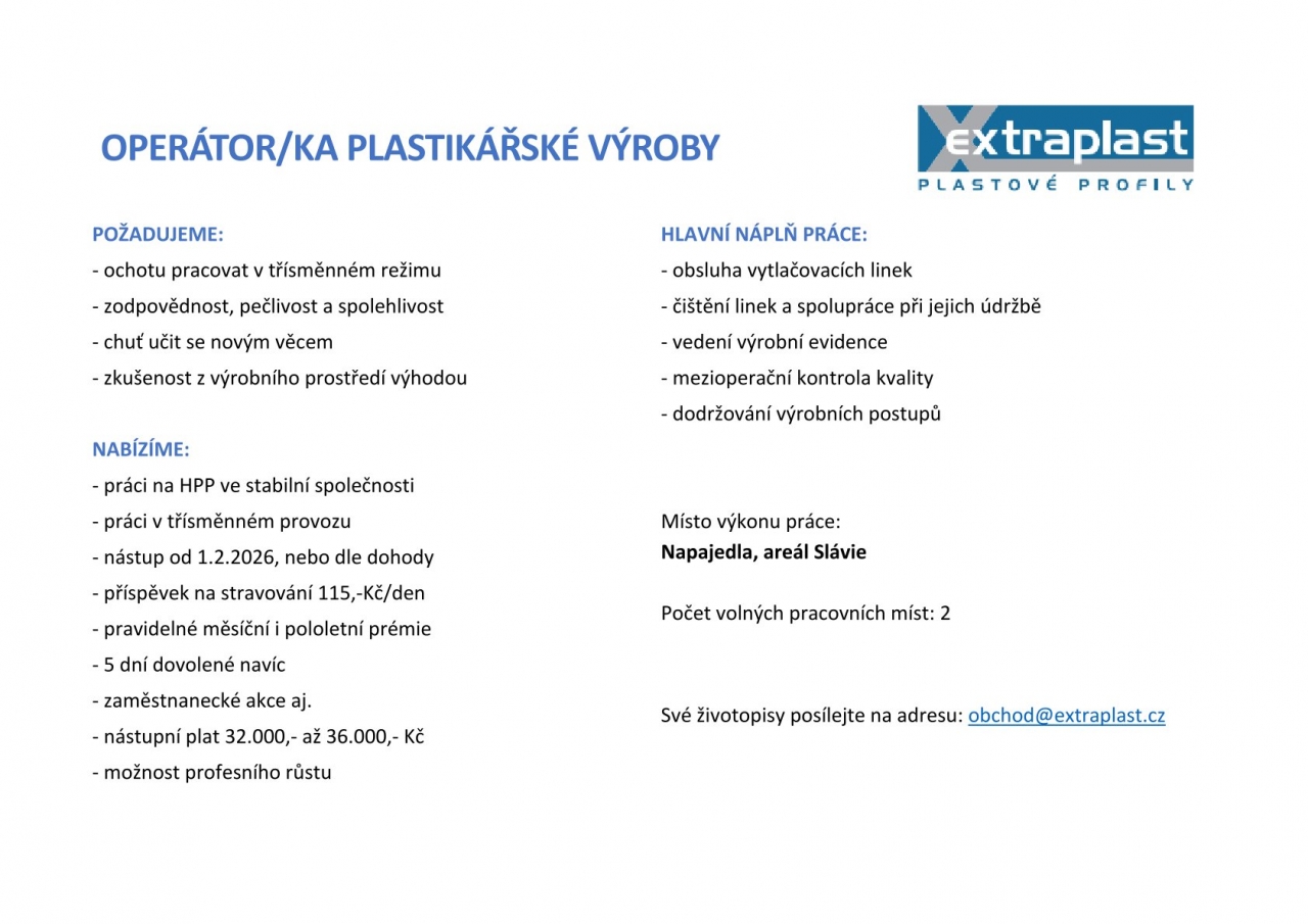 OPERÁTOR/KA PLASTIKÁŘSKÉ VÝROBY
