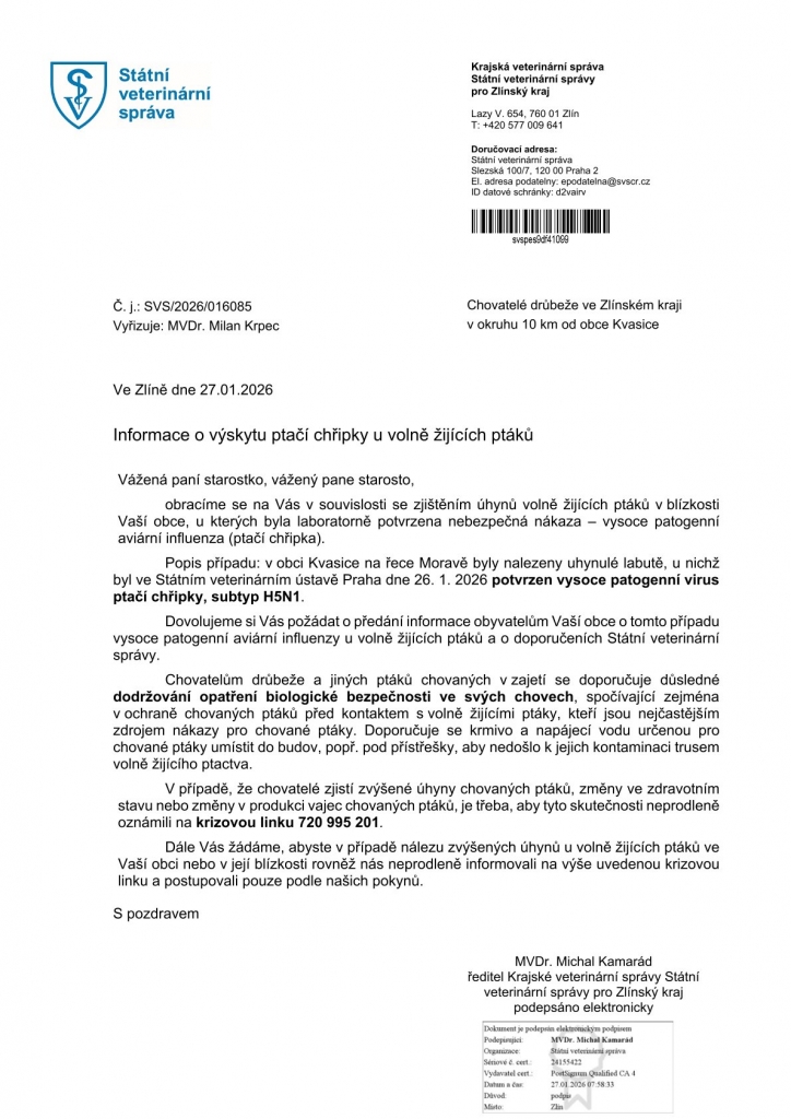 4. Ptačí chřipka LEDEN 2026 - Opatření