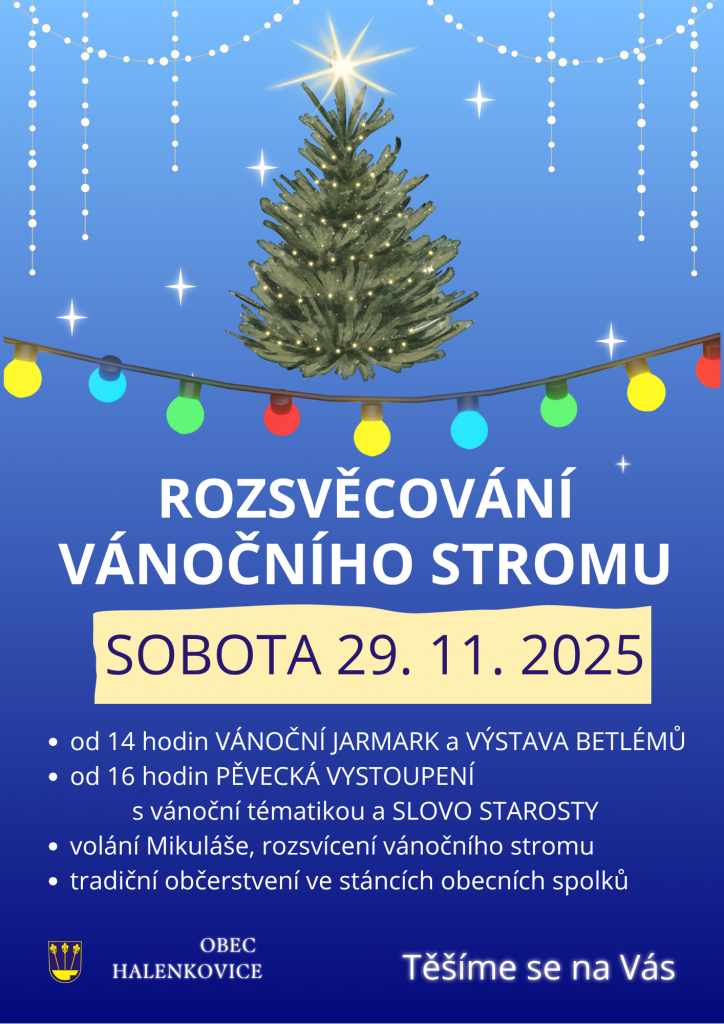 Vážení občané, milé děti, zveme Vás na Rozsvícení halenkovického vánočního stromu, které se koná v sobotu 29. listopadu.